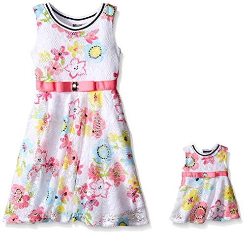 Dollie & Me Big Girls' Sleeveless Floral Printed Lace Dress, White/Multi, 6