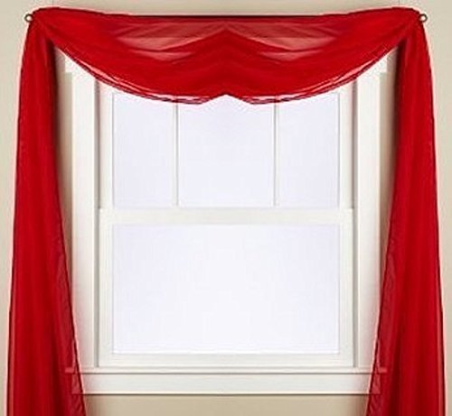 Gorgeous Home 1 PC SOLID RED SCARF VALANCE SOFT SHEER VOILE WINDOW PANEL CURTAIN 216" LONG TOPPER SWAG