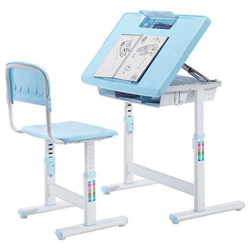 Child's Adjustable Blue Metal Storage Desk and Chair Set / Slanted Top Writing & Drawing Table for Kids