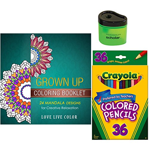 Grown Up Coloring Book Starter Gift Pack: Includes Crayola Colored Pencils, Love Live Color Mandala Adult Coloring Book and Prismacolor Scholar Sharpener (Bundle of 3) (36 Colored Pencils)