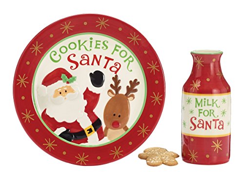 Burton & Burton Cookies For Santa Christmas Gift Set With Plate & Milk Bottle, Red