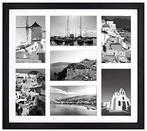 Golden State Art, 13.7x15.7 Black Photo Wood Collage Frame with Real Glass and White Displays (7) 4x6 Pictures