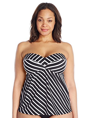 Cole of California Women's Plus Size Super Stripe Piped Tankini