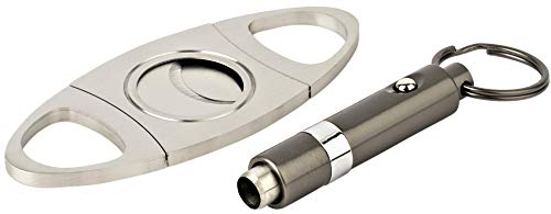 Mantello Cigar Gift Set - Cigar Cutter Stainless Steel Guillotine Double Cut Blade - Cigar Punch Keychain Gunmetal