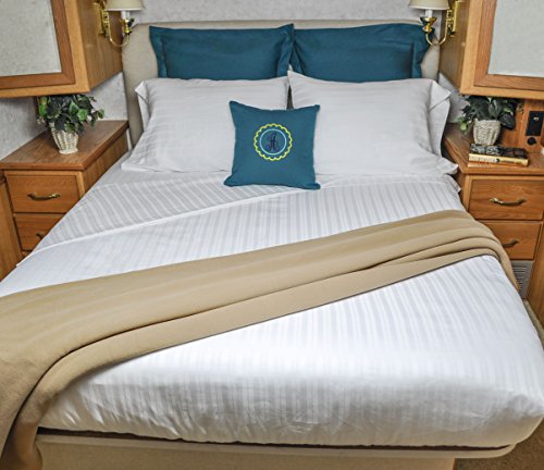 AB Lifestyles Short Queen Sheet Set 60x75 featuring NoTuck™ Top Sheet USA MADE Soft, 100% cotton White Stripe fabric 300 thread count