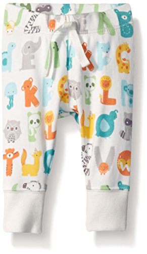 Gymboree Girls' Baby White with Green Animal Letters Interlock Knit Pants, Jet Ivory, 0-3 Months