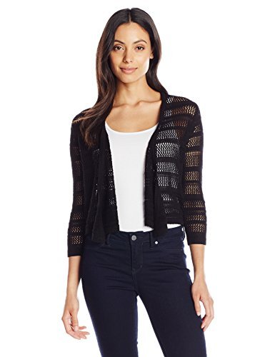 Knits by Hampshire Women's 3/4 Sleeve Draped Front Pointelle Stitch Cardigan