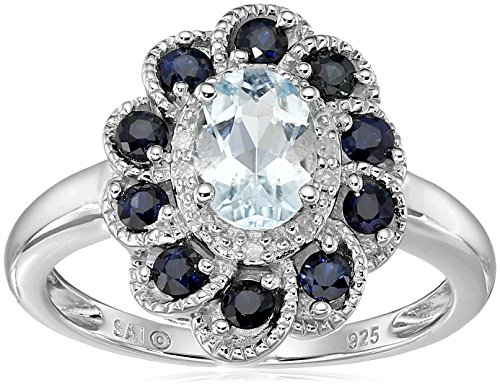 Sterling Silver Aquamarine, Blue Sapphire, and Diamond Flower Ring