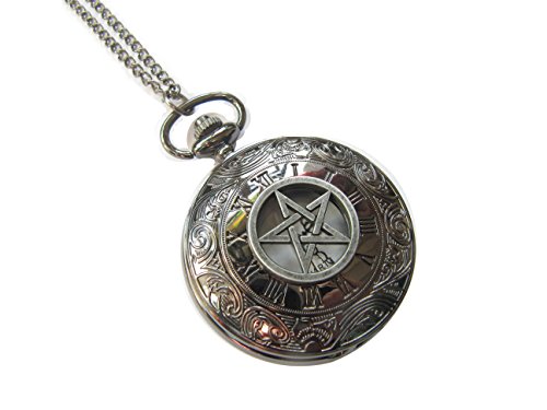 Supernatural Pentagram Pocket Watch Necklace, Pagan Pocket Watch Jewelry, Wiccan Pendant
