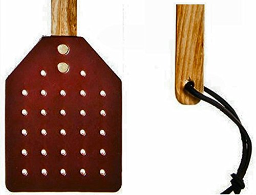 PrimeHomeProducts Heavy Duty Leather Fly Swatter- Made by Amish Craftsmen with Brown Leather Swatter and Durable Wooden Handle