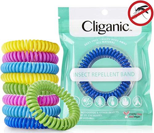 Cliganic 10 Pack Mosquito Repellent Bracelets, 100% Natural | Bug & Insect Protection, Waterproof DEET-Free Band | Pest Control for Kids & Adults