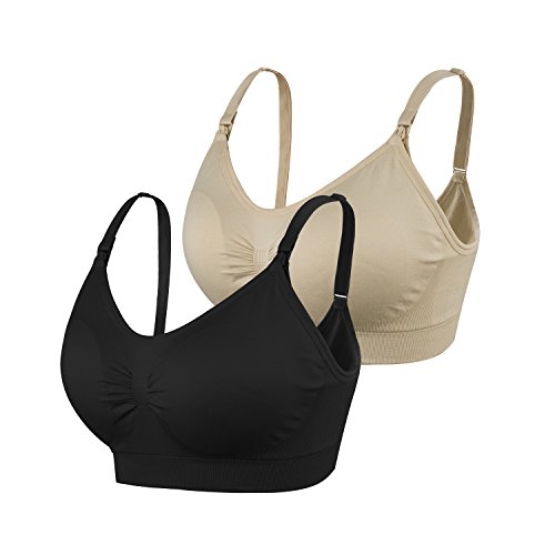 KUCI Womens Seamless Nursing Bra Padded Push up Maternity Bra (XL, Nude+Black/2Pack)