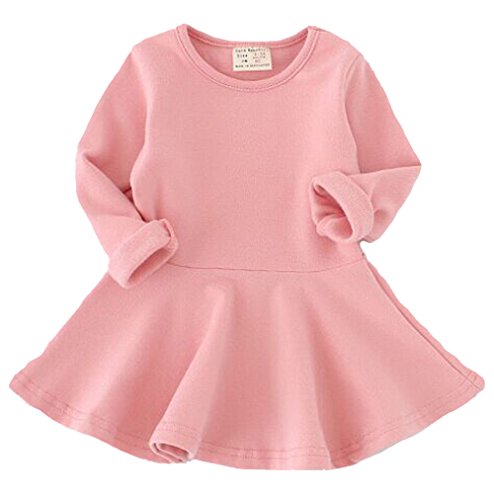 EGELEXY Baby Girl's Long Sleeve Pleated Infant Toddler Dresses Dress Tops Blouse 12-18Months Pink