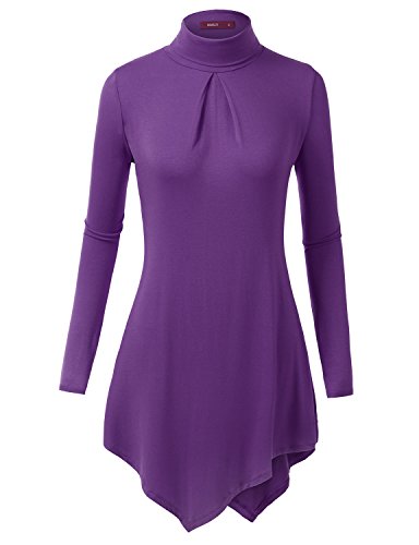 Doublju Womens Turtleneck Long Sleeve Square Hem Front Pleated Themal Tee, XX-Large,CWTTL0147_purple