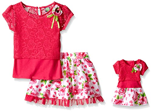 Dollie & Me Big Girls' L:ace Layered Top with Shantung Floral Printed Skirt Set