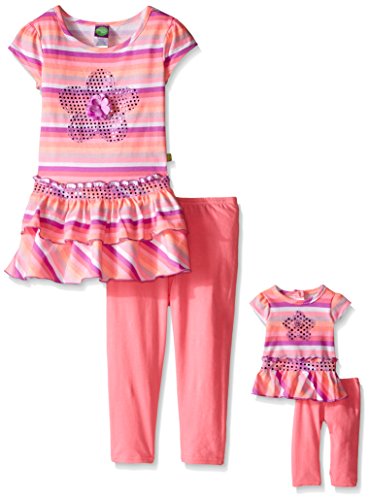 Dollie & Me Big Girls' Stripe Drop Waist Dress With Flower Applique and Legging, Purple/Fuchsia, 8