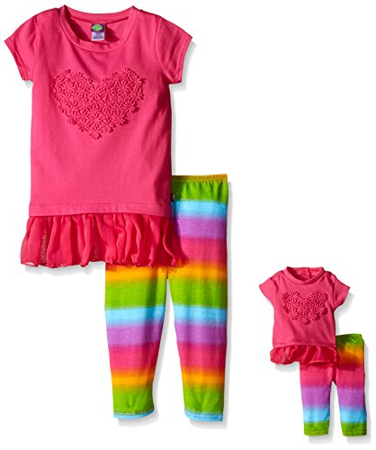 Dollie & Me Big Girls' Hi-Lo Tunic with 3D Heart Applique and Rainbow Legging, Fuchsia/Multi, 8