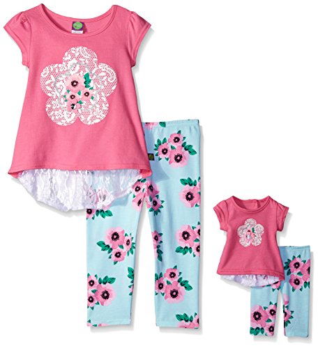Dollie & Me Big Girls' Hi-Lo Knit Lace Back Dress and Floral Legging, Aqua/Pink, 10