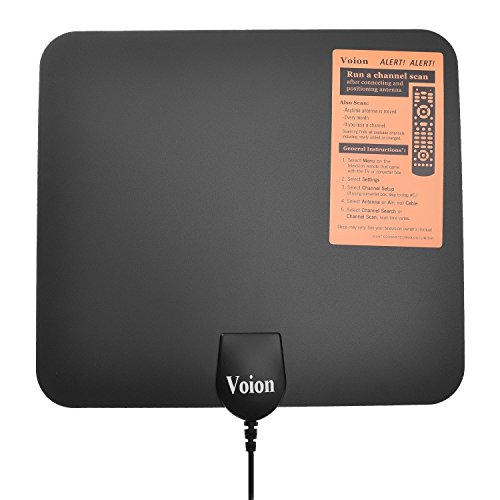 Voion Digital Indoor HD TV Antenna - 50 Miles Range with 10 ft Premium Cables and Coaxial Connectors, Paper-thin, Reversible,Well-Made Material-Black/White
