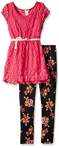 One Step Up Girls' 2 Pc Set Lace Tunic Dress Printed