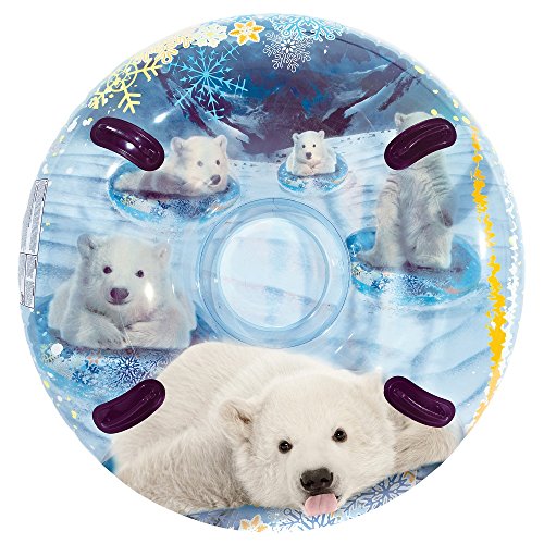 Pipeline Sno Polar Bear 3D MEGA Inflatable 2 Person Snow Tube with 4 Grip Handles and Repair Kit, 48” Inch Diameter