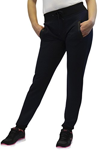 Quilted Jogger Sweat Pants Lounge Drawstring Waist Pocket Accents, Navy Large