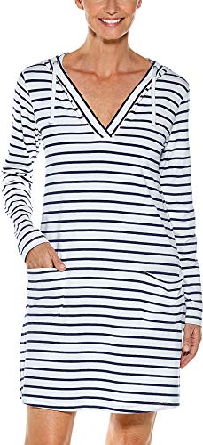 Coolibar UPF 50+ Catalina Beach Cover-Up Dress - Sun Protective (Medium- Navy/White Stripe)