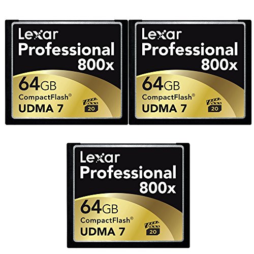 Lexar 64GB Professional 800x Compact Flash Memory Card (LCF64GCTBNA800) 3-Pack Bundle