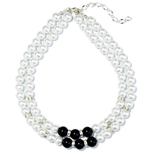 StarrY Elegant 2 Chains White and Black Pearl Beads Statement Necklace Cute Pendant