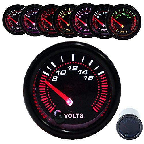 Dewhel Voltage Meter Black Volt Gauge 8-16V Universal Meter 7-Colors LED 52mm 2" 12V Smoke Lens