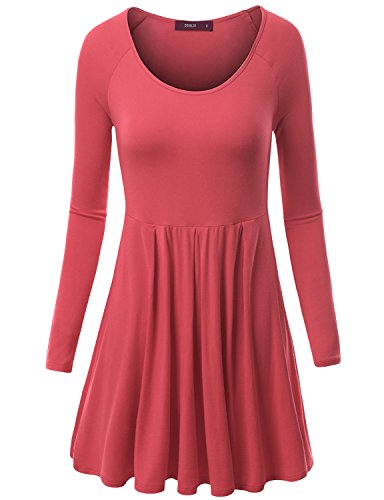 Doublju Long Raglan Sleeve Scoop Neck Flare Tunic Dress Top for Women with Plus Size Coral X-Large