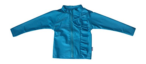 SwimZip Little Girl Long Sleeve Rash Guard Zipper Swim Shirt with Bow UPF 50+