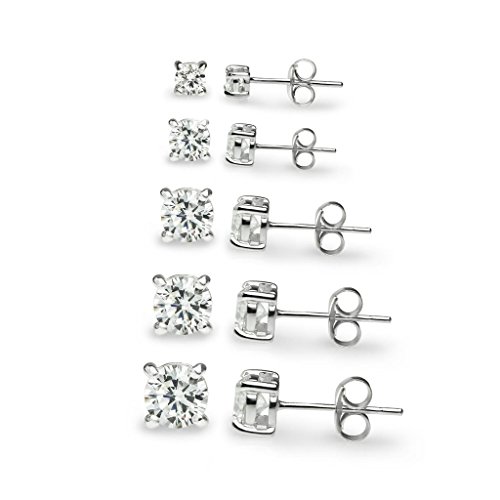 River Island Jewelry –“5 Pairs” Sterling Silver Square CZ Stone Cubic Zirconia Stud Earrings 3mm, 4mm, 5mm, 6mm