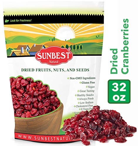 SUNBEST Dried Cranberries Unsulfured in Resealable Bag, Kosher Certified (2 Lb)