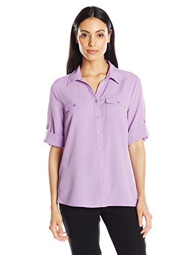Notations Women's Long-Sleeve Button-Front Blouse, English Lavender, Medium