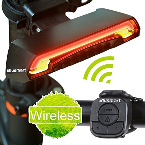 Tail light Blusmart Bike Rear Light Wireless Rechargeable Remote Control Waterproof LED Safety Light with 7 Red/ Yellow Lights Mode of Turning Flashing Laser Automatic On/off 85 Lumens USB Charging
