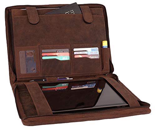Supreme Business Portfolio by Rustic Town | Professional Organizer Gift for Men & Women | Durable Leather Padfolio | Easy to Carry with A Zippered Closure | Many Slots, Compartments & Holders