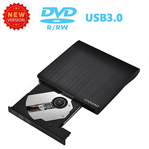 COOLEAD USB 3.0 Ultra portable External CD RW/ DVD RW/CD ROM/ DVD ROM Drive/writer/burner for Laptops, Desktops and Notebooks (A Version Black)