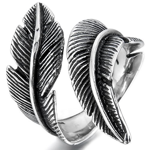 INBLUE Men,Women's Stainless Steel Ring Black Silver Tone Feather Vintage