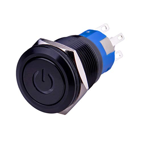Ulincos Latching Push Button Switch U19C1 1NO1NC SPDT ON/Off Black Metal Shell with Red LED Suitable for 19mm 3/4" Mounting Hole (Red)