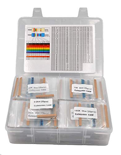 Cutequeen 1% 3350 pcs,134 Values RoHS Compliant Resistor Kit x 25pcs =3350 pcs (0 Ohm - 4.7M Ohm) 1/4W Metal Film Resistors Assortment