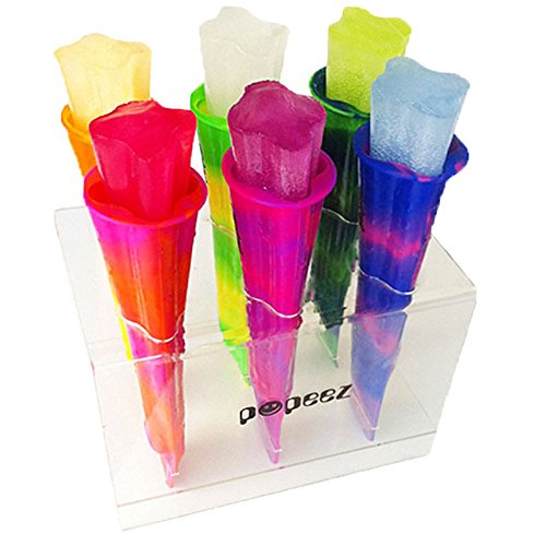 POPEEZ ICE POP MOLDS, 6 popsicle molds, stand indluded, FREE BONUS 6 Colors Silicone Wristbands, Flower Shape Swirl Colors Ice Pop Maker, Lunch Box Slim Snacks Containers, Gift Box