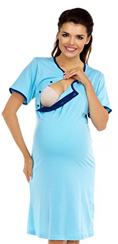 Zeta Ville Nursing Nightdress Robe Labour Hospital Gown Mix & Match 393c (Nightdress - Light Blue, US 4/6, S)