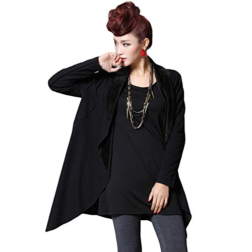 1990s Women Velvet Patchwork Long Sleeve Shawl Cardigan Black 78cm/30.5inch