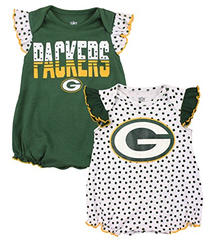 Outerstuff Green Bay Packers NFL Baby Girls 2 Pack Polka Dot Fan Creeper Set - Green and White