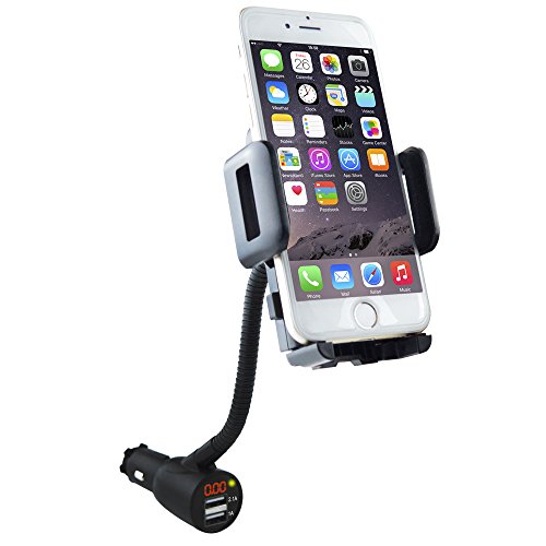 3-in-1 Cigarette Lighter Car Mount + Voltage Detector, SOAIY Car Mount Holder Cradle w/Dual USB 3.1A, Display Voltage Current Compatible with iPhoneXS XS Max XR X 8 7 6s 6 5s Samsung S8 S7 S6 S5