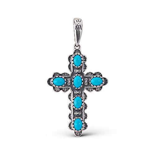 American West Sterling Silver Sleeping Beauty Turquoise Cross Pendant Enhancer