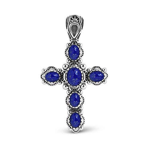 American West Sterling Silver Sleeping Beauty Turquoise Gemstone Cross Pendant Enhancer