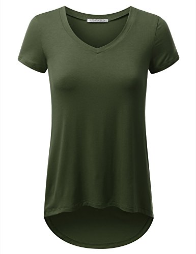 URBANCLEO Womens Hi-Lo V-Neck Jersey T-Shirt Olive XLarge