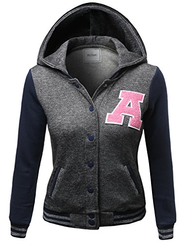 Plus4u Women's Casual Baseball Snap Button down Fleece Jacket Plus Size